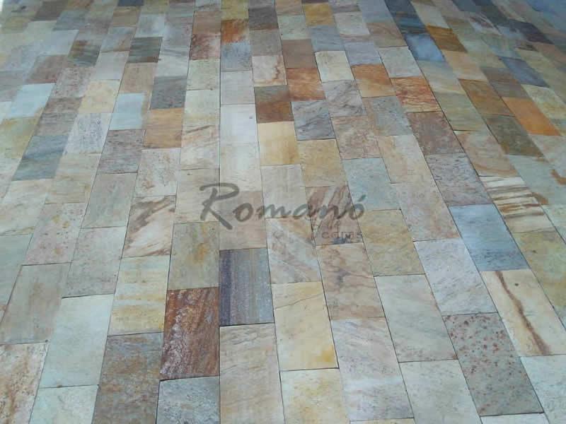 The merged quartzite “São Tomé” stone is marketed in standard sizes according to the type of cut.